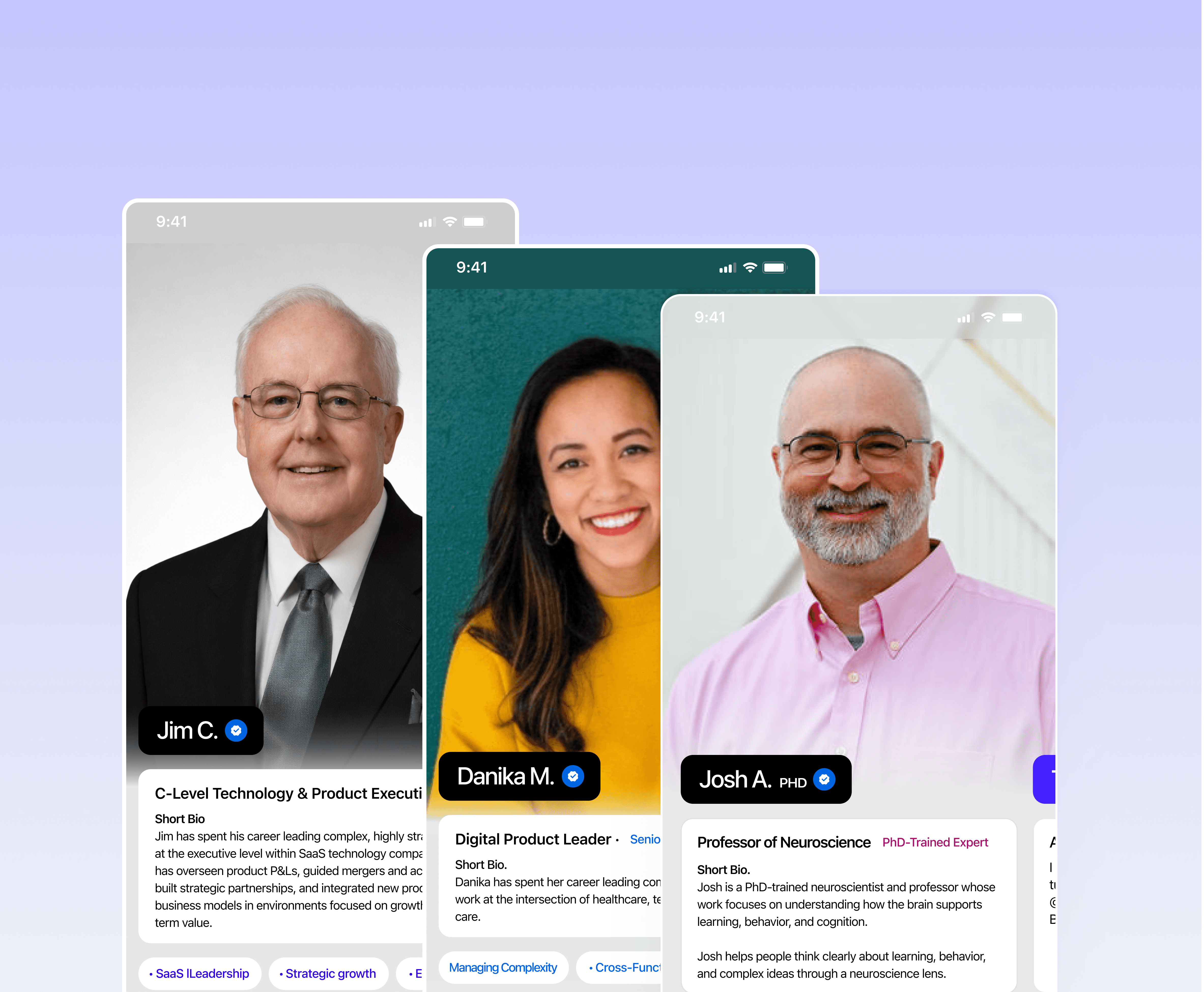 We don’t match based on hierarchy. We match based on relevance, chemistry, and what you’re navigating — blending psychology, communication style, and your goals to personally connect you with the right person for the challenge you’re facing.